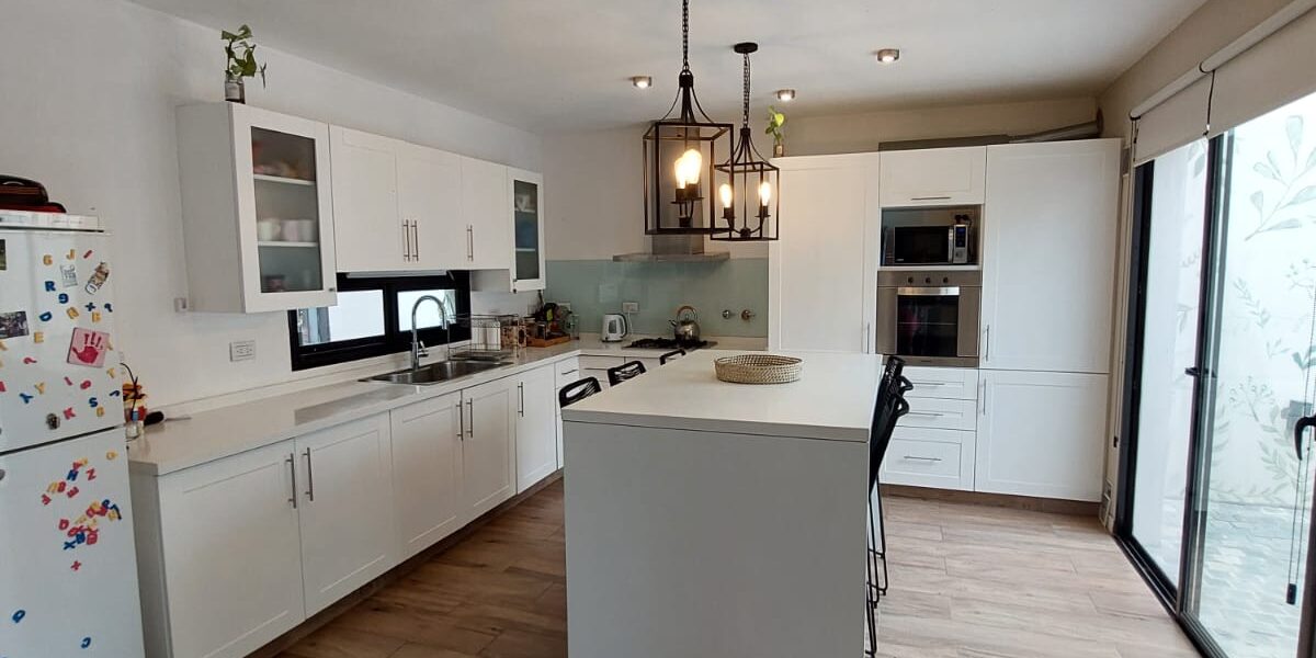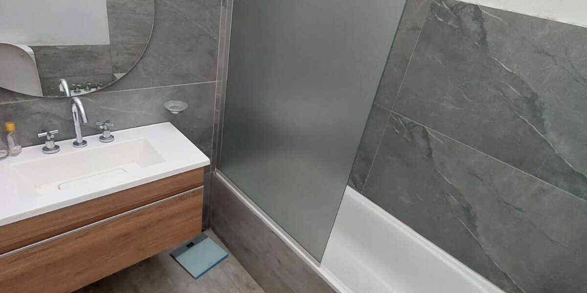 Aberturas de Aluminio, pisos porcelanato Ilva. Mesada Purestone Nube. Muebles cierre neumatico de Marmocult.